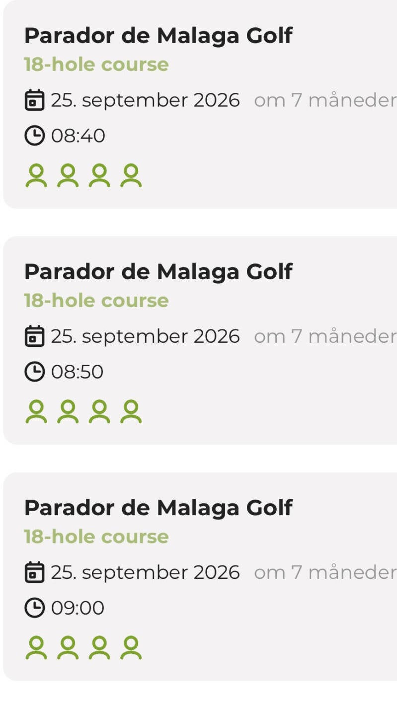 12 teetimes med 6 golfbiler bestilt